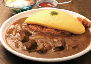 夏の避暑地として有名な阿蘇。その中でも高原に位置する産山村は、さらに涼しく、水源があり、自然に溢れ、上る途中の山道から見る阿蘇谷は絶景です。そのため昔からバイクのツーリングコースとして有名でした。そしてその池山水源を目前とした場所に山水亭はあります。休憩がてらに立ち寄ったライダーやドライバーがこぞって食べたのが当店のオムライスでした。厳選卵をふんだんに使い、ふわりと半熟に仕上げた卵を、時にはトマトベースのハムライスの上に、時にはオリジナルのグリーンカレーの上に。